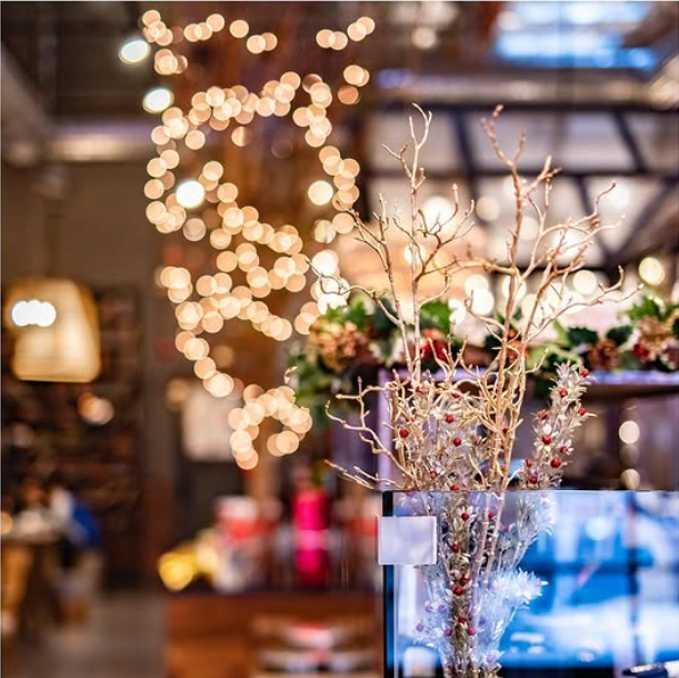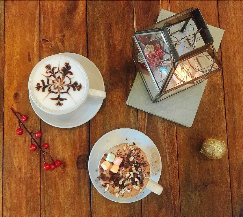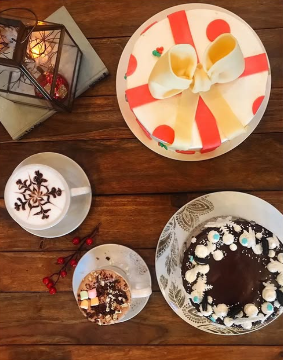 The design was paired with the seasonal menu—gift-shaped whole cakes and the “Dirty Snowman” hot chocolate, ensuring visual and sensory harmony across the experience. With the same limited budget, large empty boxes and wrapping paper were creatively repurposed to enhance the scale. A giant wreath served as the focal point inside the central glass greenhouse, while cotton along the window frames mimicked freshly fallen snow. The café’s five-meter indoor trees were turned into natural Christmas trees, adorned with Santa and train figurines that brought out a warm, American-style festive charm.